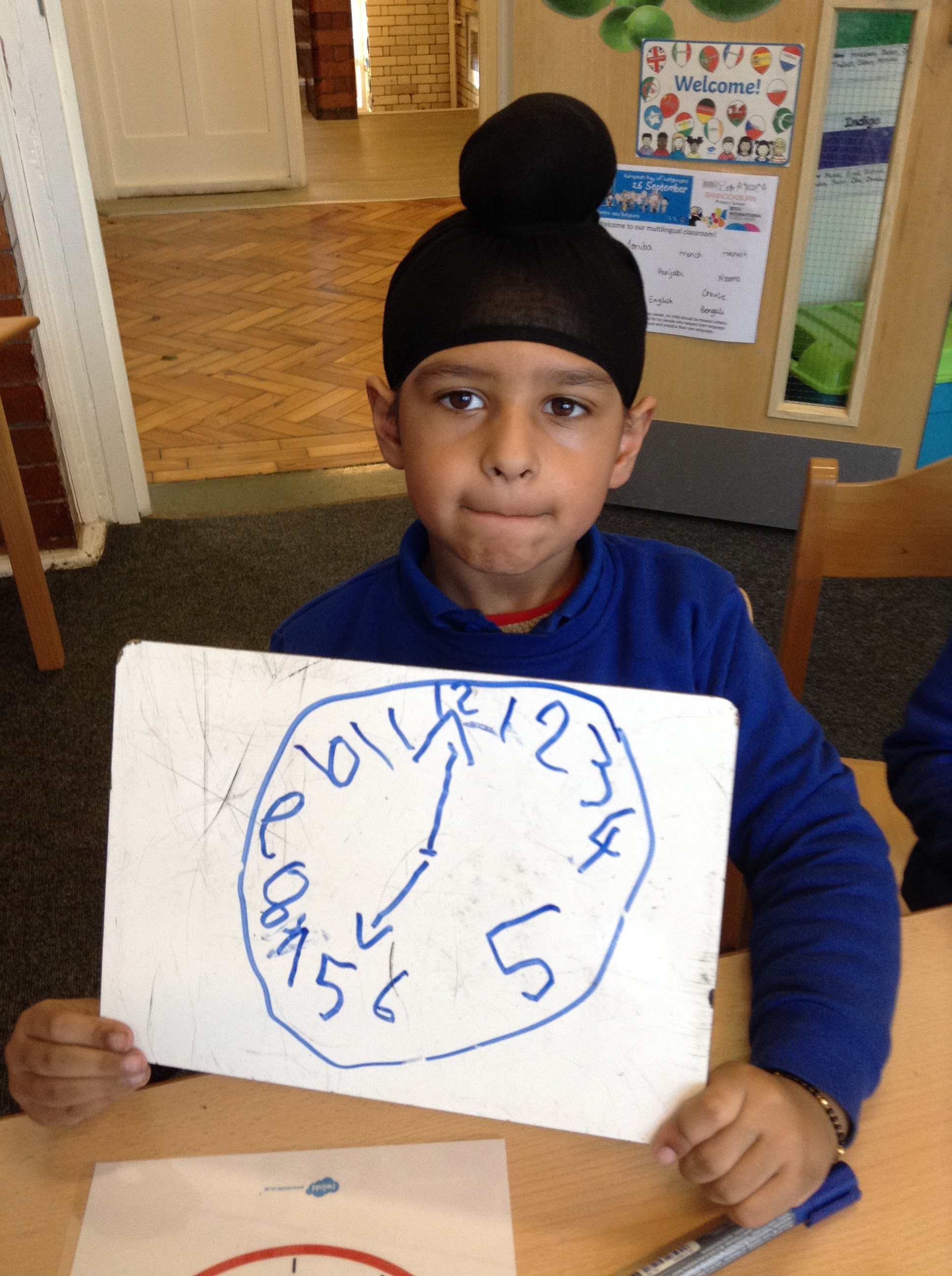 This week, Year 1 have been learning about time. They have been using language associated with time including hours, minutes and seconds. They know that once around the clock is 1 hour and half way around the clock is half an hour. They have been using the clocks to represent different times including o'clock and half past.