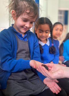 In Science, we learnt about which animals and insects live in the forest habitat. We explored our own forest to see which insects we could find, we found insects such as; snails, ants, bees, woodlouse and spiders. We then watched the ‘Wriggly Wild Show’ where we got to see rainforest insects. This included; snakes, a bearded dragon, gecko, millipede, tarantula skin, newt, leeches, giant snail, hissing cockroaches and scorpions. Take a look below and see our wriggly friends!