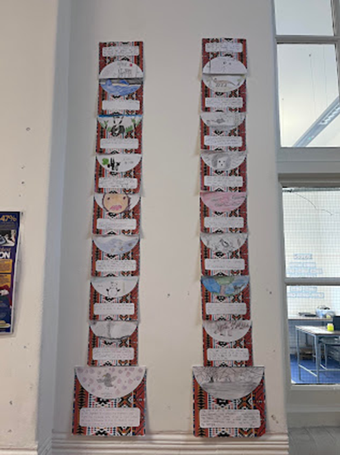 They then used their tiles to create a class totem pole for the rest of the school to observe outside their classrooms.